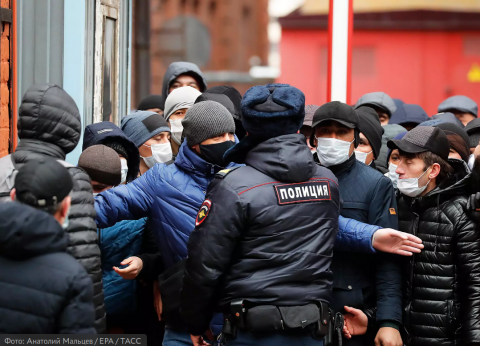 «К нам за помощью на данный момент обратилось свыше 10 тысяч человек, — рассказывает МОСЛЕНТЕ руководитель благотворительного фонда „Развитие миграции“ Гульзина Маматахунова. — Это узбеки, киргизы, таджики и даже русские. Им очень, очень тяжело. Мигранты сейчас вынуждены жить в квартирах по 20–30 человек, им нечего есть, они боятся выходить на улицу, потому что там — полиция, обирающая их до последней копейки»