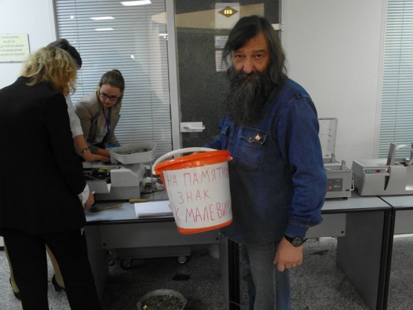 СМЮККурский галерист Олег Радин сдал в банк 5 ведер денег, собранных на памятник Малевичу
