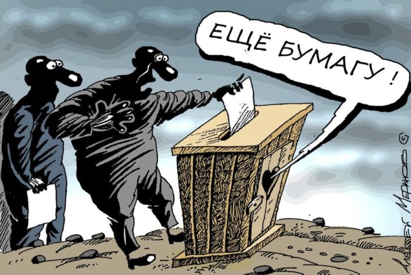 Как известно, реальность зачастую бывает куда более удивительна, нежели литературный вымысел, что блестяще доказали Путин и Ко. Всенародное голосование (опрос, плебисцит или как это мероприятие называется), на которое выделили из бюджета 14,8 млрд народных рублей, сразу набрало невиданный размах: везде и всюду, на лавочках, под лавочками, в багажниках и за гаражами, в чистом поле и в кустах развернулись пункты, где граждане могли бы гордо и свободно волеизъявиться насчет памяти предков, гуманного отношения к животным, индексации пенсий, союза мужчины и женщины и государствообразующего языка. Первое, что бросилось в глаза при многочисленных фотоотчетах о голосовании — это повальная нищета, причем какая-то донельзя убогая, почерневшая, косая и кривая, привычная и потому особенно безнадежная. Посреди этой мерзости запустения россияне чуть ли не стоя на коленях или в иных неизящных позах, согбенные над пеньками и садовыми скамейками, голосуют за продолжение и усугубление достижений путинизма, уже обнулившего буквально все: здравоохранение, образование, науку, культуру, экономику, промышленность, да еще угрожающего в будущем очередными рывками и прорывами.